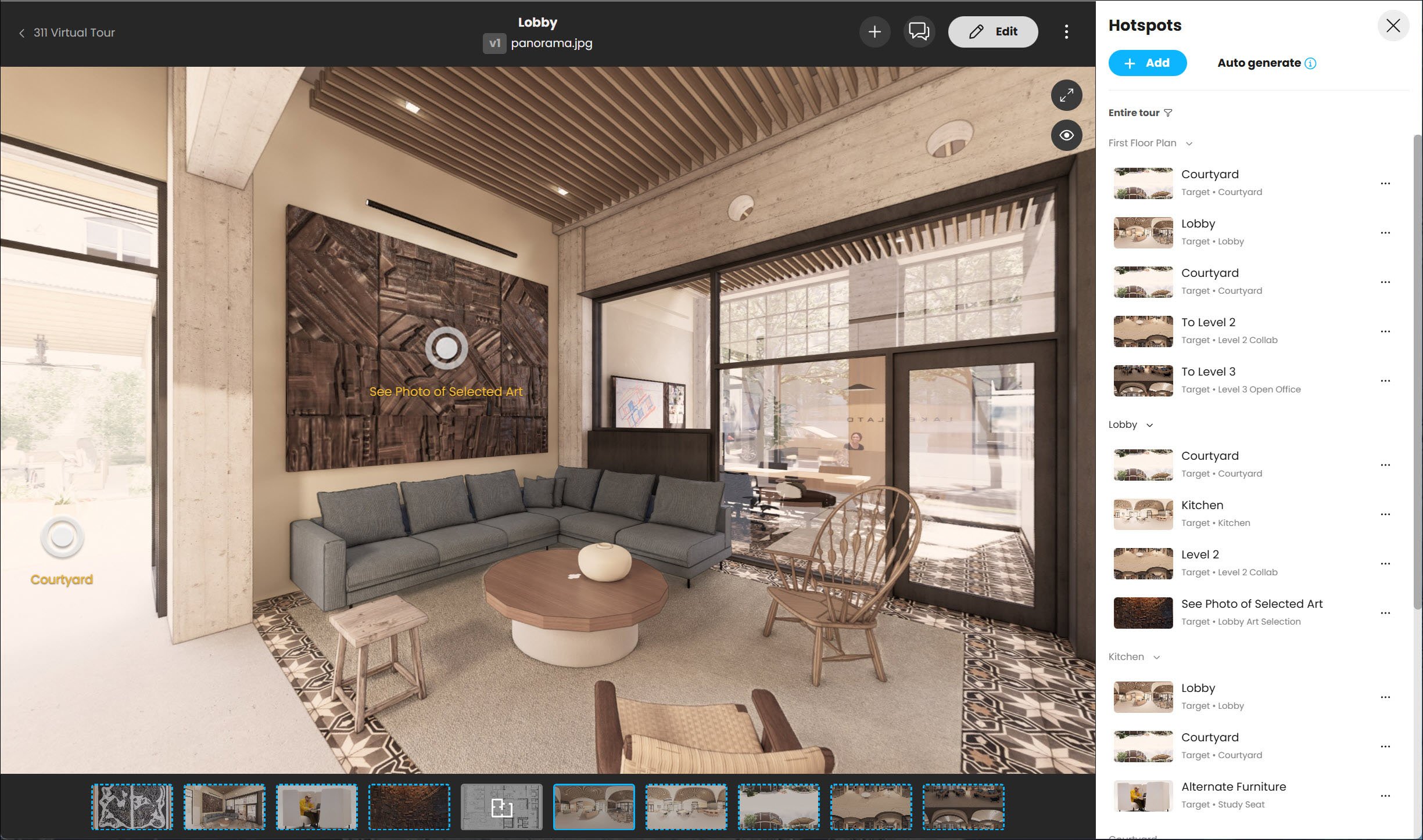You can share your ideas with people via a still image, panorama, video walkthrough, or a standalone file. These options can help others understand your design intent and vision for the project.