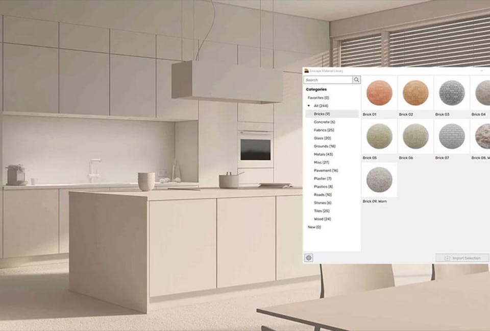 Tenha acesso a mais de 425 materiais predefinidos de alta qualidade na biblioteca de materiais do Enscape. Comunique sua estética de design e aprimore o realismo das cenas com facilidade.