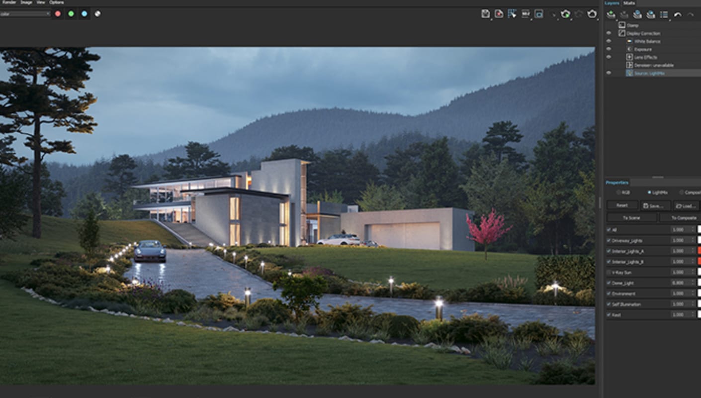 Ajuste e termine suas renderizações no novo Layer Compositor. Combine elementos de renderização, defina modos de mesclagem e ajuste cores sem um aplicativo de pós-processamento separado.