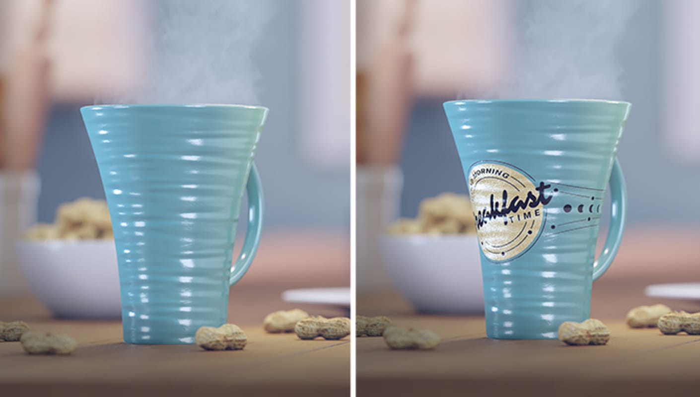 See how to add stickers & labels to curved objects. Blend surface and decal bump for even more realism.